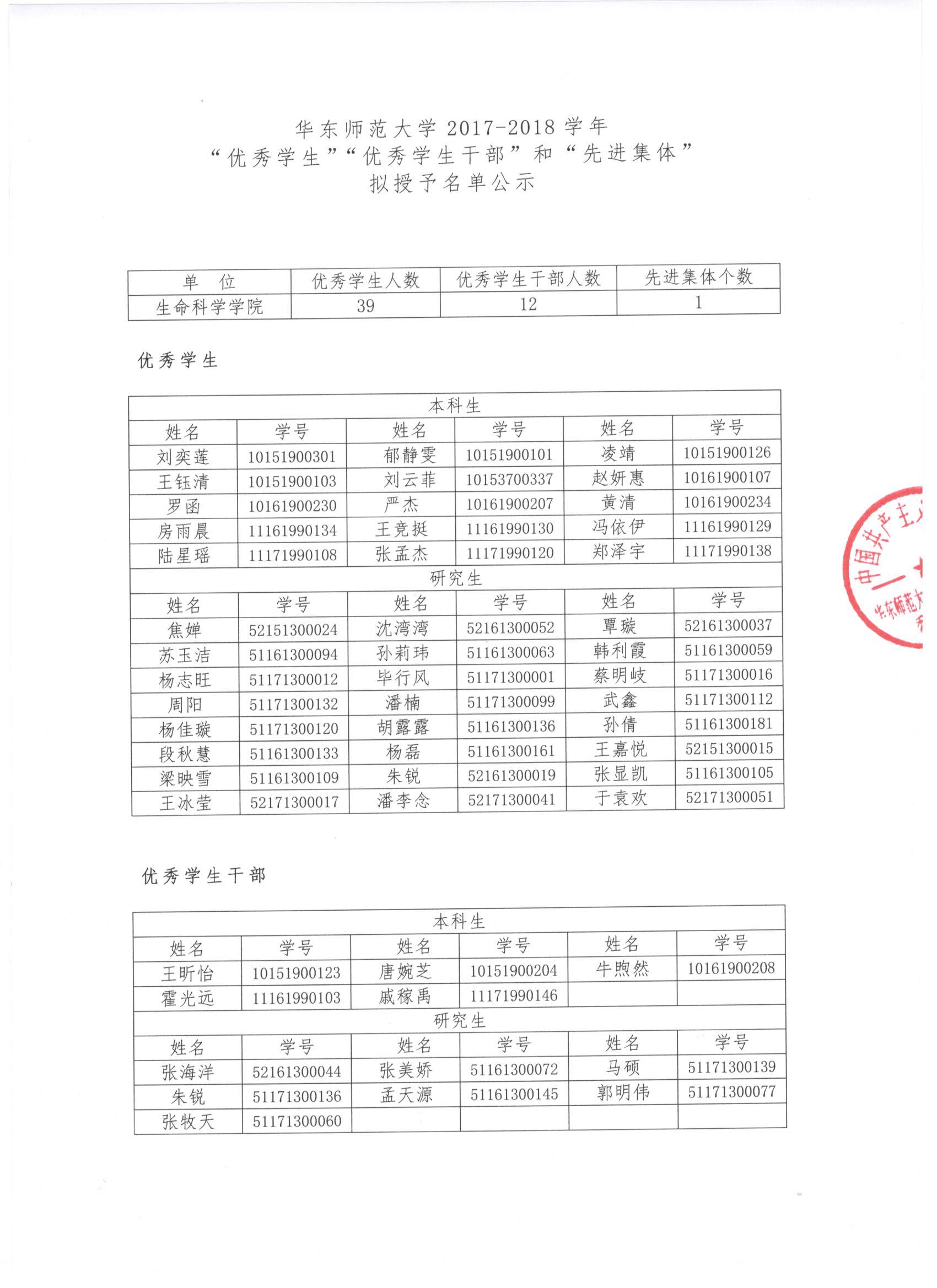性吧 2017-2018学年 “优秀学生”“优秀学生干部”和“先进集体” 拟授予名单公示