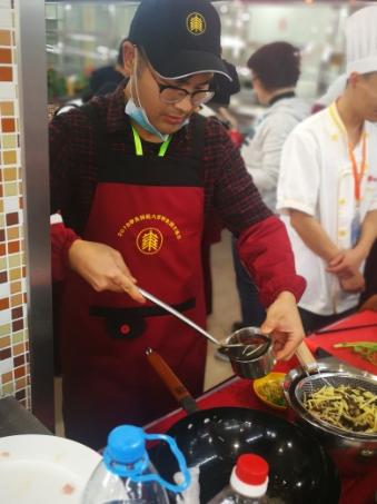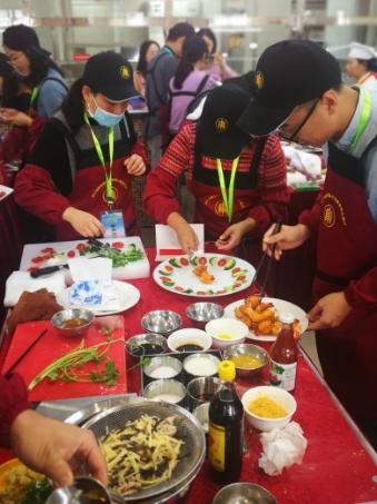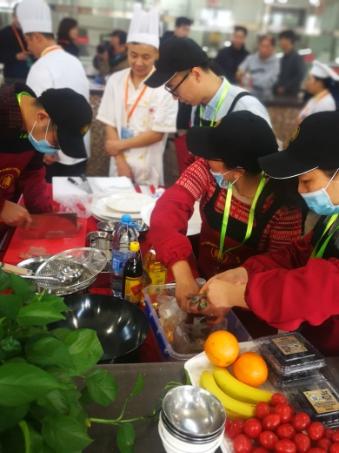 师生厨艺展示活动拉开帷幕。参赛的14支队伍各个摩拳擦掌,热火朝天地开始了比赛。