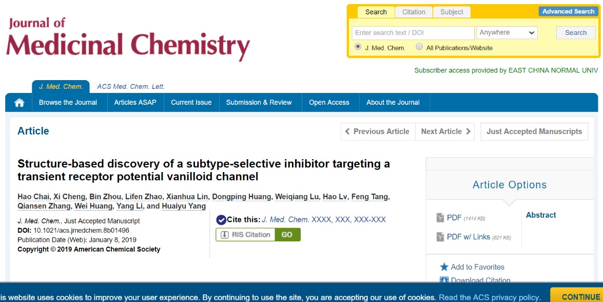 Journal of Medicinal Chemistry发表阳怀宇课题组研究结果