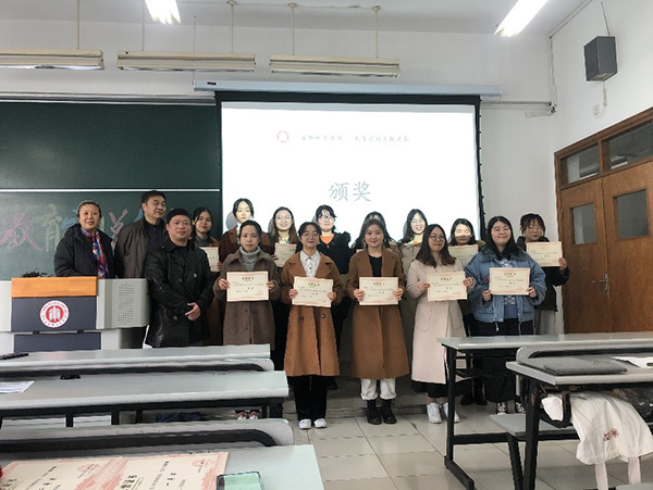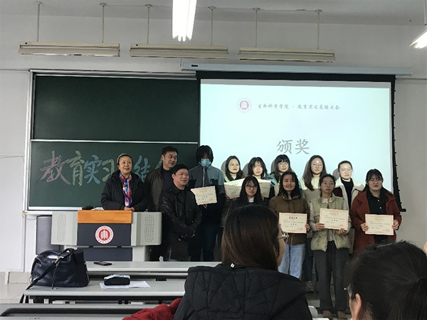 接下来是颁奖环节。教育实习结束后,同学们对实习工作进行了认真总结与反思,提交了丰富的教育实习成果材料。在此基础上,性吧 组织评选出了教育实习优秀学生、优秀教学案例、精彩故事、教学反思、教育调查与研究报告、优质课件、说课稿、教学设计等奖项,对同学们在教育实习中取得的成绩表示肯定与鼓励。