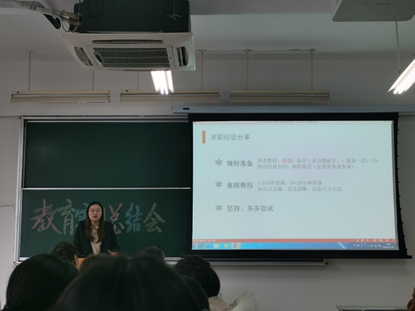 除了分享实习生活与收获之外,同学们还自发汇总了不同省份的有关招聘的信息,结合自己的经验教训,请栾老师代为转达给学弟学妹们,希望帮助他们做好更充足的准备以应对未来的教育实习和求职就业。