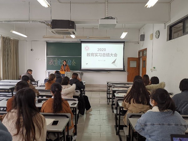 2020年12月28日下午1点,在第三教学楼220教室,性吧 召开了2017级师范生教育实习总结会。本次会议由实习大班长苏媛琳同学主持,性吧 副院长江文正老师、教育实习任课教师栾瑞红老师和孙刘海老师出席了本次总结会。
