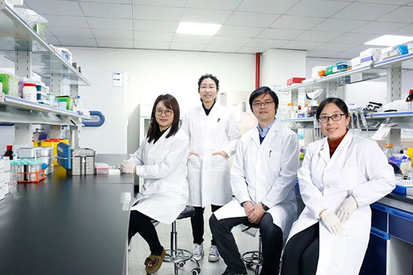 李雨博士后(左一)、徐凌燕研究员(左二)、马欣然研究员(右二)和王冬梅副研究员(右一)在实验室