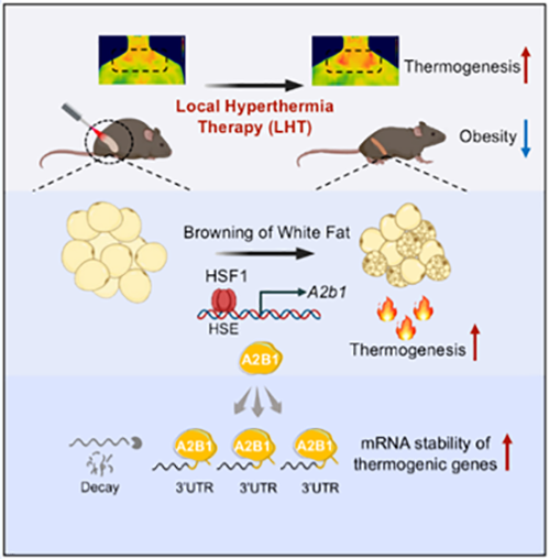 马欣然/徐凌燕课题组长期关注的热休克因子HSF1与脂肪代谢的密切关系。鉴于HSF1在热激下被激活的特性,他们将目光转向了热疗法。