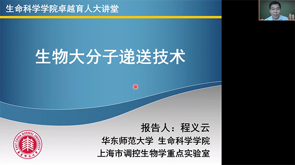 会上,程义云研究员以“生物大分子胞内递送技术”为题,讲述了课题组的发展概况,重点介绍了课题组近年来在胞内递送技术上的开拓创新历程和最新成果,也分享了自己在实验室团队建设、教师和学生培育工作上的经验。他提出,一个实验室的进步不仅仅在于培育学生的全方位发展和能力提升,团队中老师们所起的身体力行、模范带头作用也非常重要,因而老师也需要在各方面持续提升专业技能以更好的引导学生。对于如何培育学生方面,程义云研究员也提出了非常值得借鉴的育人理念:由于我们组的研究课题偏向于多学科融合交叉,对学生更需因材施教,根据个人背景和阅历找出学生的特长和短板,引导学生找到更合适的课题方向,在成长过程中可以少走弯路。