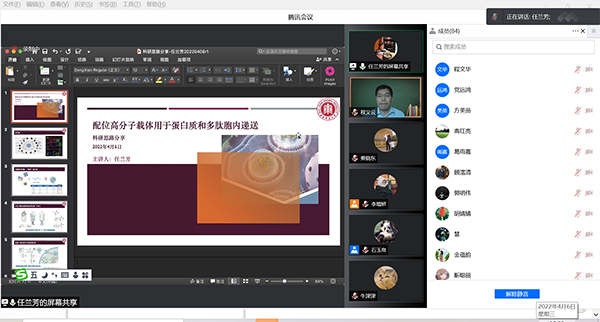 4月6日上午,性吧研究生卓越育人大讲堂(第五讲)在腾讯会议线上顺利举行。本次活动由程义云研究员及其学生任兰芳博士生共同分享,来自学院的教师和学生共80余人参与了本次大讲堂,学院副院长姜晓东教授主持。