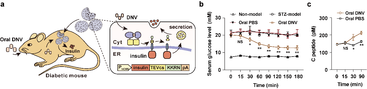 图2.ChemPASS定制细胞对1型糖尿病小鼠血糖的调控