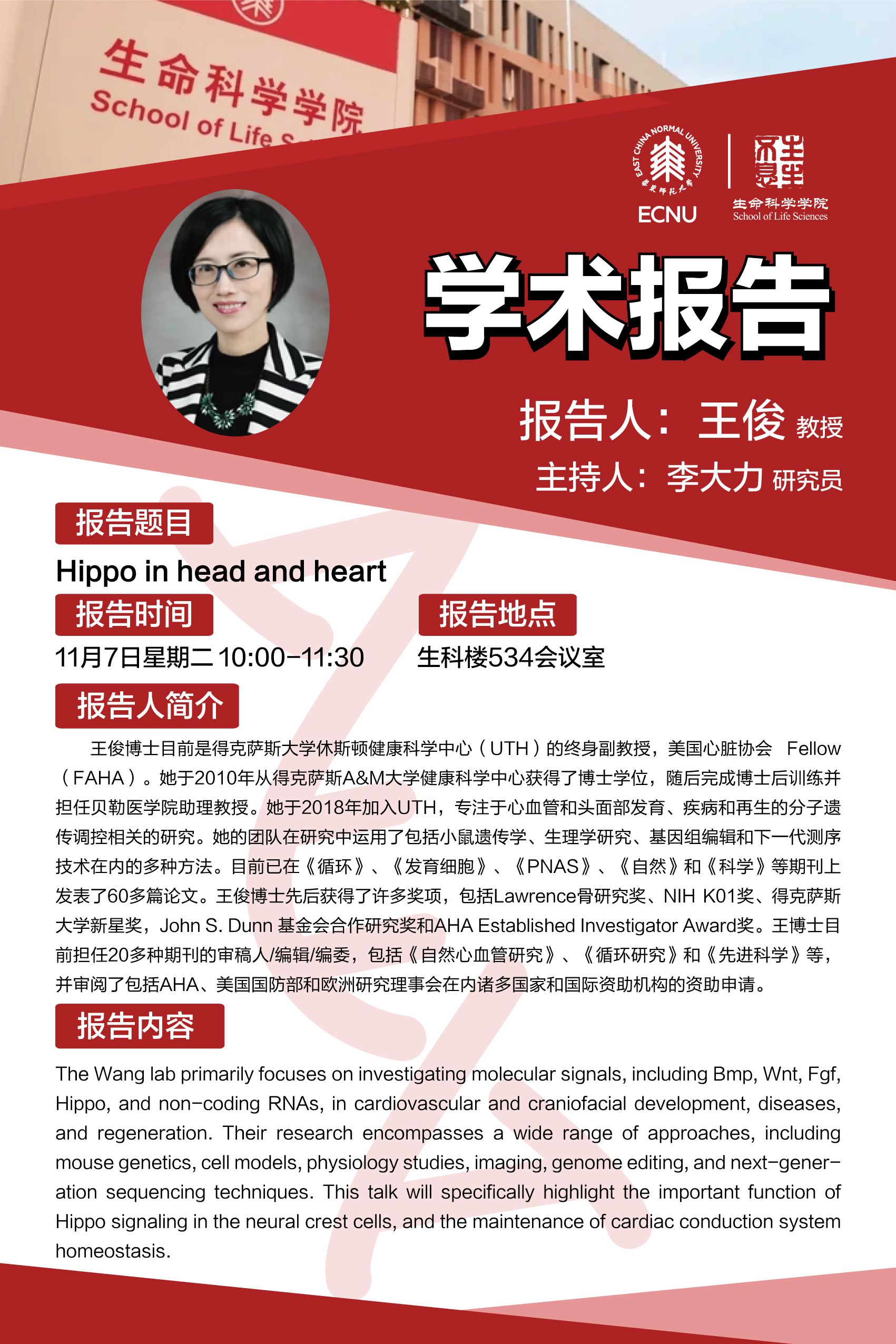 报告地点:闵行校区生科楼534会议室