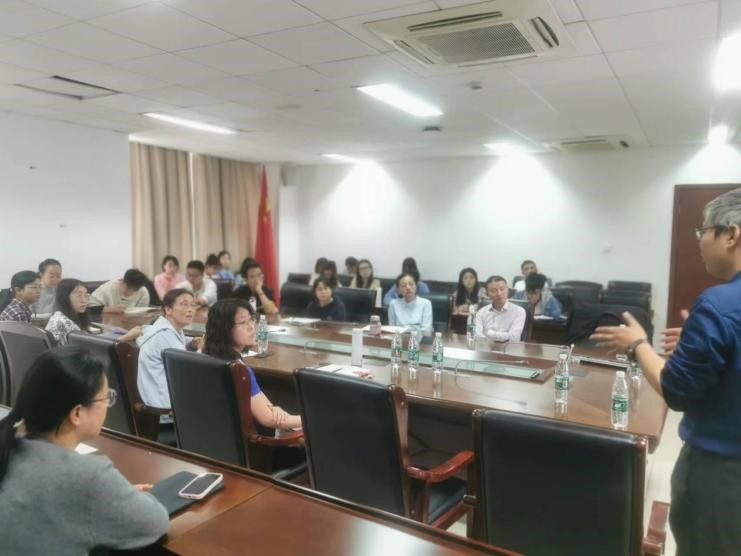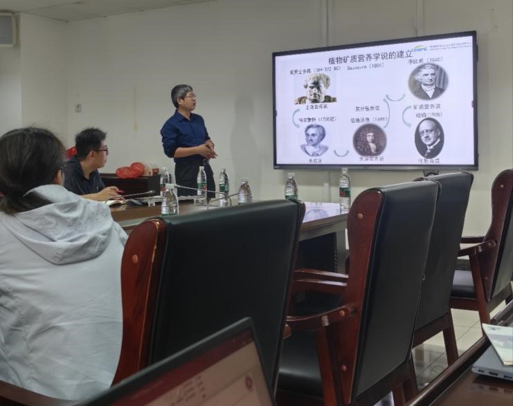 报告结束后,植物组老师和同学们也积极地与晁代印老师进行了交流。李超老师提出报告中采用了很多代表性植物,想知道这些植物是从何而来?晁老师表明他们除了自主野外采集的材料之外,还有很多则通过合作方获得,并倡导大家在科学研究中要加强合作。李小方老师对NAET1在囊泡中产生给带来植物的影响有所疑问,晁老师解释囊泡转运体加快了NAET1的运输效率。姜伊娜老师对报告中提到的铬转运问题也提出了设想,她指出是否可以实现植物铬转运的组织特异性,从而修复土壤,李浩老师也参与讨论并对此报有希冀,晁老师表示这些假想可能会实现,但仍需进一步探索研究。