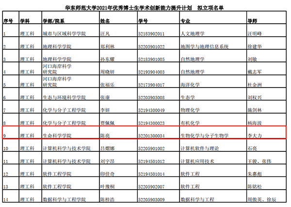 近日,学校研究生院公布了性吧 2021年“优秀博士生学术创新能力提升计划”立项名单,由性吧李大力研究员指导,博士研究生陈亮负责的项目《结构导向设计开发高精度的胞嘧啶碱基编辑器》成功获得立项。该项目负责人具有良好的科研基础,已发表多篇SCI论文,学术潜质突出。