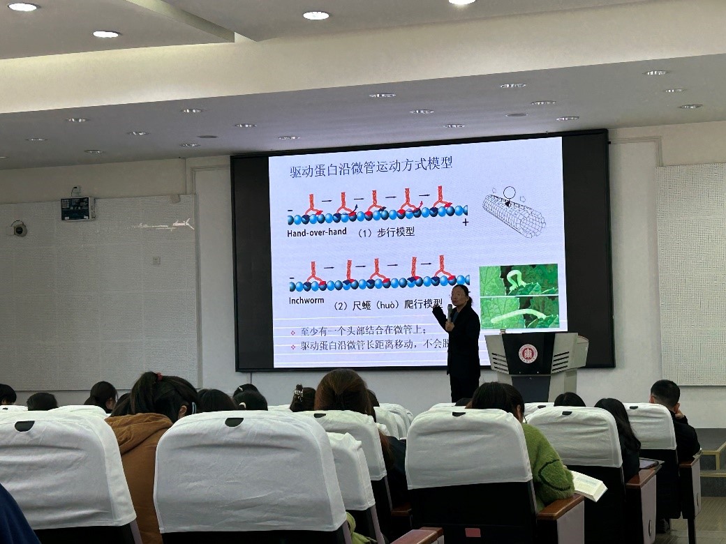 在本次公开课中,韦秀梅老师详细地讲解了细胞骨架的结构和功能,其教学过程思路清晰,授课内容紧扣主题,教学技巧专业熟练,为同学们和听课老师带来了一场引人入胜的公开课教学。课堂上,韦秀梅老师充分发挥多媒体教学手段,并辅以各种生动的细胞生物学相关动画视频,巧妙设问,积极引导学生参与教学活动,极大地调动了同学们的学习兴趣,推进了学生知识的掌握和思维的发展。