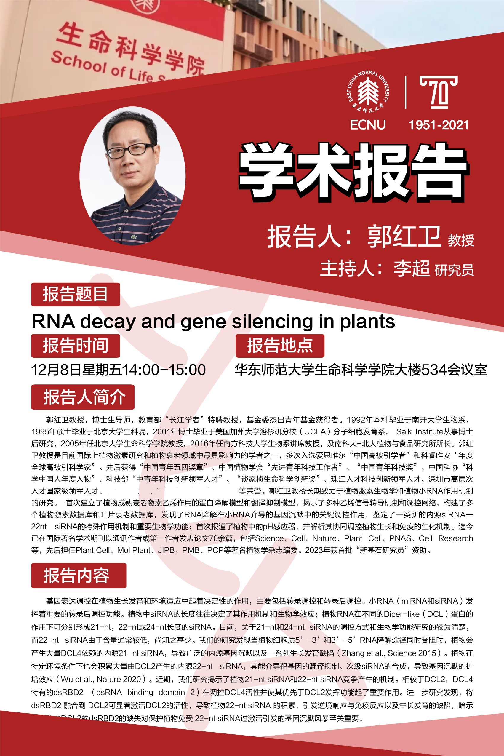报告题目:RNA decay and gene silencing in plants
