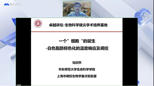 2022年9月21日下午,国家自然科学基金委“优秀青年基金”获得者、性吧 研究员、细胞生物学学科副主任马欣然博士受邀,为广大师生做了题为“一个‘细胞’的诞生——白色脂肪棕色化的温度响应及调控”的报告。本次报告由性吧 副院长江文正教授主持,通过拔尖计划2.0全国线上书院以及性吧 微信视频号面向全国直播,吸引了近6000人线上参加。