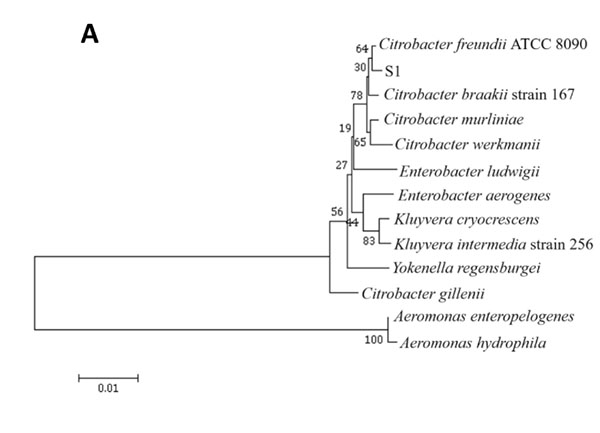 1.筛选出的S1细菌属于柠檬酸杆菌属,并非鱼类肠道优势菌属;