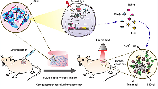 上述研究成果于2022年10月26日以“Optogenetic-controlled immunotherapeutic designer cells for post-surgical cancer immunotherapy”为题在 Nature Communications 期刊上发表,该研究开发的远红光调控的新型肿瘤免疫疗法既可以解决肿瘤手术切除疗法易复发和转移的问题,也可以避免肿瘤免疫疗法起效慢以及不可控性产生的非特异性过度激活问题,显著地提高肿瘤手术切除治愈率。该疗法开启了免疫抗癌新思路,同时也扩展了光控系统在生物医学领域的应用,具有潜在的临床转化意义。