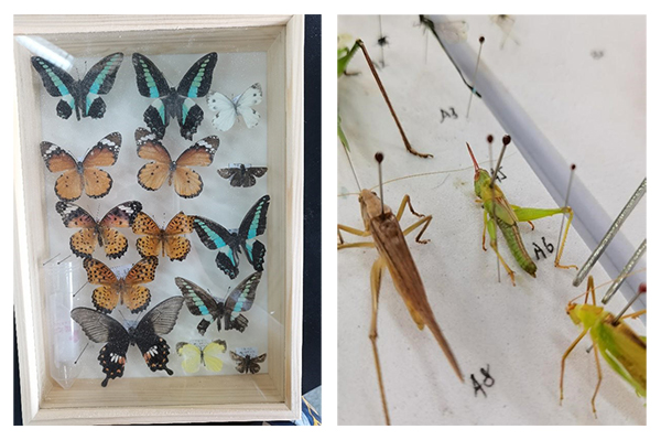 本次实习,在王群、何祝清老师的引导下,在浦江郊野公园开展了有趣的昆虫捕捉活动。组起小队、拿起捕网开始四处觅虫、捉虫。红蜻蜓、青凤蝶、玉带凤蝶、斐豹蛱蝶、金斑蝶等等美丽的昆虫让学生们欣喜若狂。在小组间的交流探讨,老师们的生动讲解中结束了快乐的采集工作,回到实验室便全身心投入标本制作工作。看着自己制作的标本,学生们不禁感到满足、自豪。