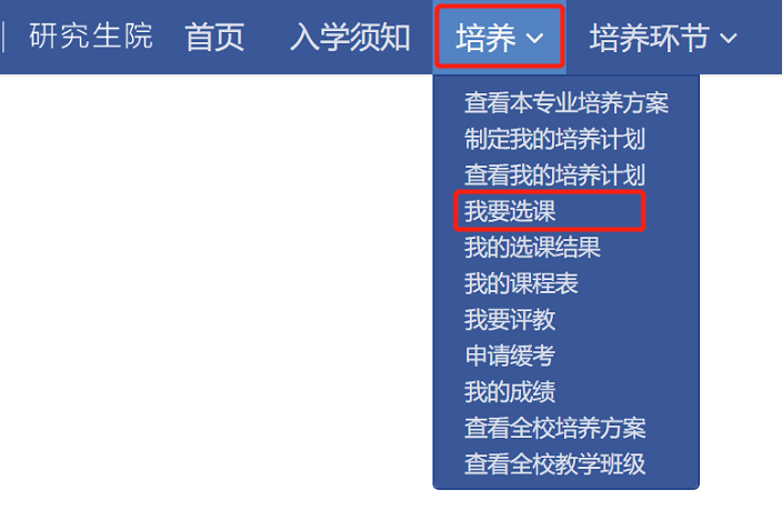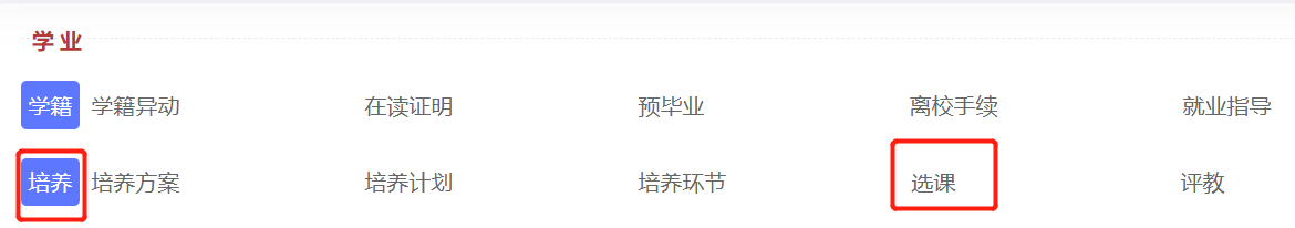 登录公共数据库——找到【学业】模块——点击【培养】中的【选课】——权限点击“学生”,进入新培养系统——培养——我要选课
