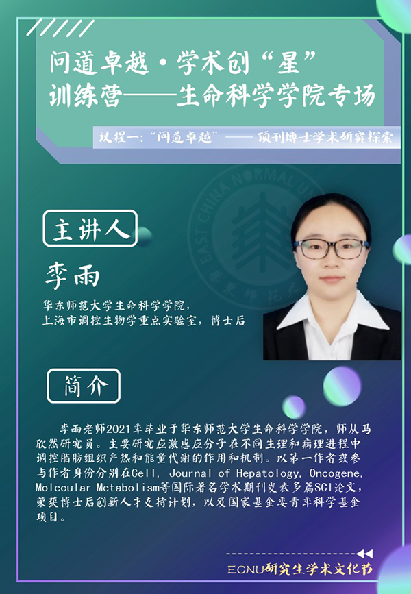 李雨,上海市调控生物学重点实验室博士后,2021年毕业,师从马欣然研究员