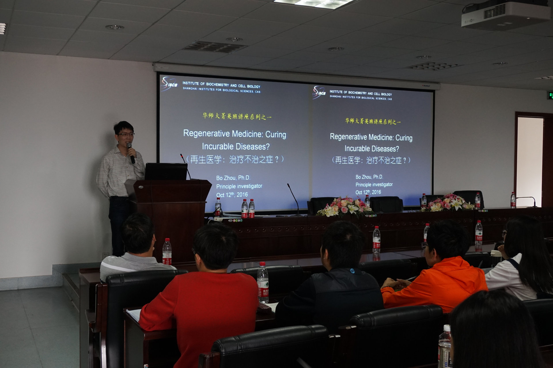 2015级、2016级本科菁英班本学期“第一次师生座谈会”在生科楼534会议室顺利召开。此次座谈会非常荣幸地邀请到中国科学院上海生命科学研究院生物化学与细胞生物学研究所周波教授为学生们做学术讲座。校教务处谭红岩老师,性吧