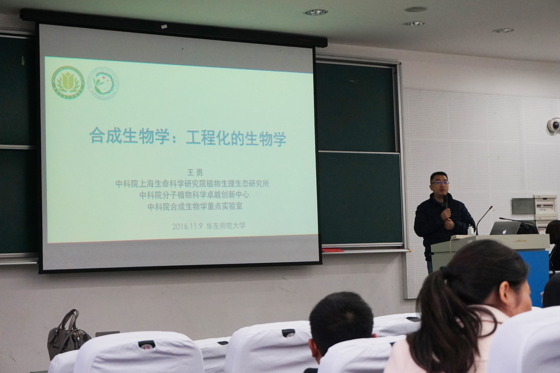 2015和2016级本科菁英班本学期第二次学术前沿讲座在闵行校区第一教学楼108报告厅顺利召开。此次非常荣幸地邀请到中国科学院上海生命科学研究院植生所王勇研究员为学生们做学术讲座。生科2015和2016级菁英班学生共同参与了此次讲座。讲座由菁英班班主任江文正教授主持。