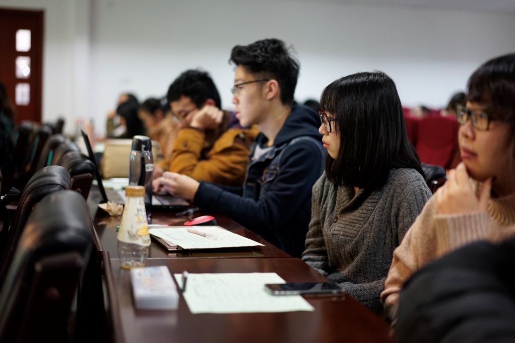 从宏观的植物和动物,再到微观的材料与分子,同学们在严格控制的六分钟内将进入实验室一年以来的工作成果进行了展示,也对未来的工作内容进行了规划。在场的同学们也听得十分认真,纷纷写下了自己的思考和感想。大家的课题汇报都很精彩,从研究背景、研究目的、研究设计和研究结果进行具体阐述,也凝聚了各自对科研的思考。相信经过这次报告,2015级的同学们对今后的工作有了更多想法,2016级和2017级的同学们扩大了知识面也对科研内容有了更深的了解。每场汇报之后评委们都对其提出了一些疑问和建议,2015级的学生们也都在台上认真回答并谦虚接受,都表示在日后会改正不足,并对目前的试验进行更深入细致的研究。