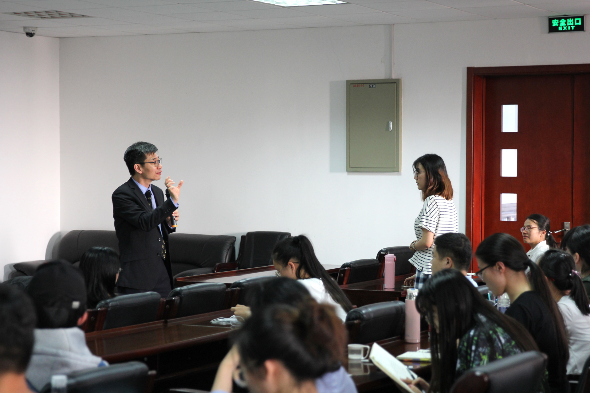 接下来是学生提问环节,在场的本科生、研究生以及博士生们都提出了在生涯规划中遇到的困惑,并询问了在准备申请以及语言和面试时的要求等。对这些大家都关心的问题,Chris Lee先生和王林发院士都作出了十分中肯的意见和建议,再次强调了批判性思维和团队合作精神等科研素质的重要性,语言幽默风趣,会场气氛热烈。最后在热烈的掌声中结束了这场宣讲会,会后,仍有许多感兴趣的同学与来访老师进行进一步沟通。