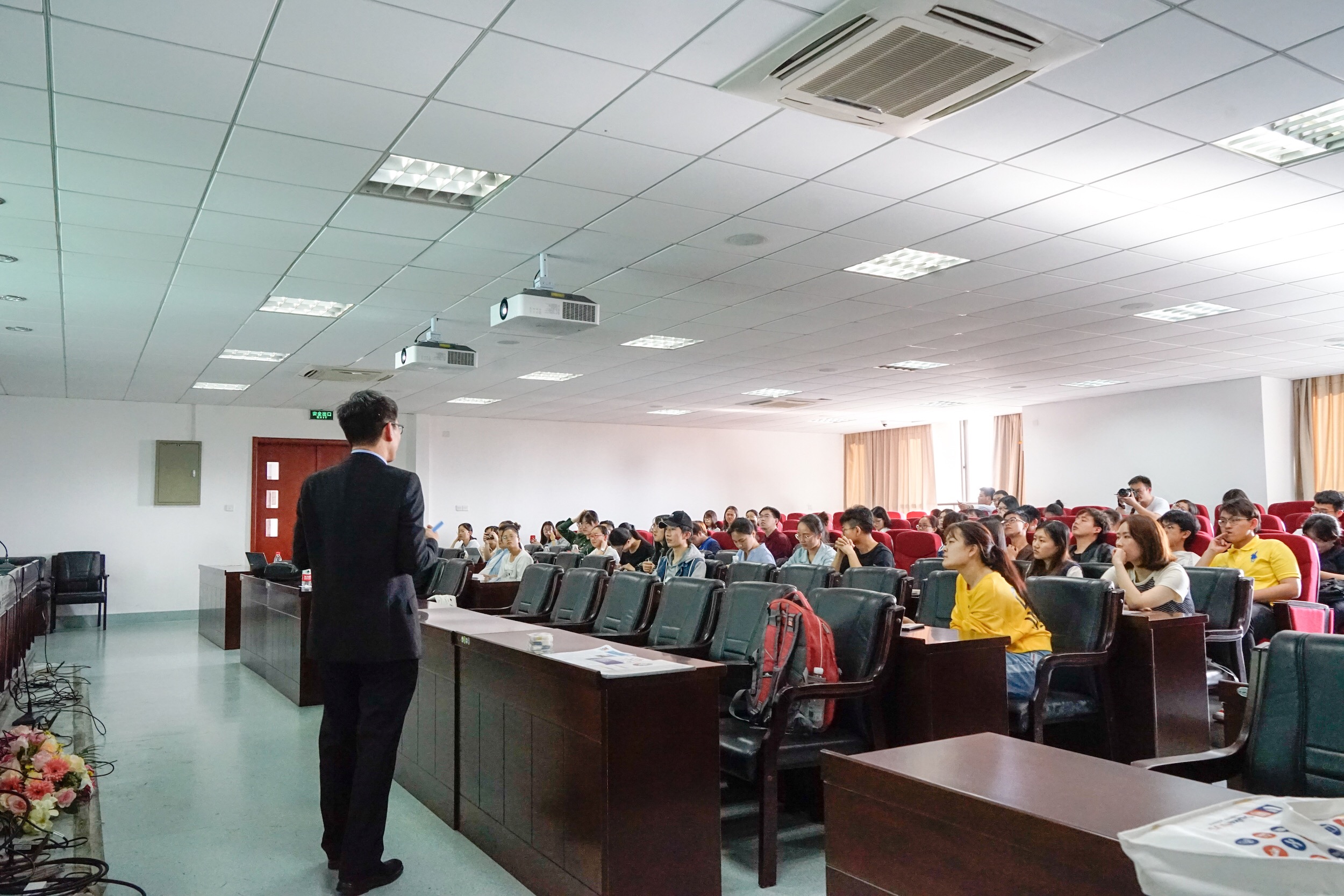 2018年5月11日下午3点45分,杜克-新加坡国立大学(Duke-NUS)医学院专题讲座暨招生宣讲会在生科院534报告厅顺利进行。我们很荣幸邀请到来自杜克-新加坡国立大学(Duke-NUS)医学院王林发院士,招生高级顾问Chris Lee,解剖学副教授Lai Siang Hui博士一行为性吧学生做了关于杜克-新加坡国立大学医学院的医学硕士及博士学位课程的介绍和招生宣传。整个报告厅座无虚席,不仅有硕士、博士生,还有包括菁英班同学在内的对出国留学十分感兴趣的本科生同学们。整个宣讲会氛围轻松愉快,在各位教授的宣讲下,同学们也对出国修读医学MD及PhD的流程和需要准备的材料等有了更为细致的了解。