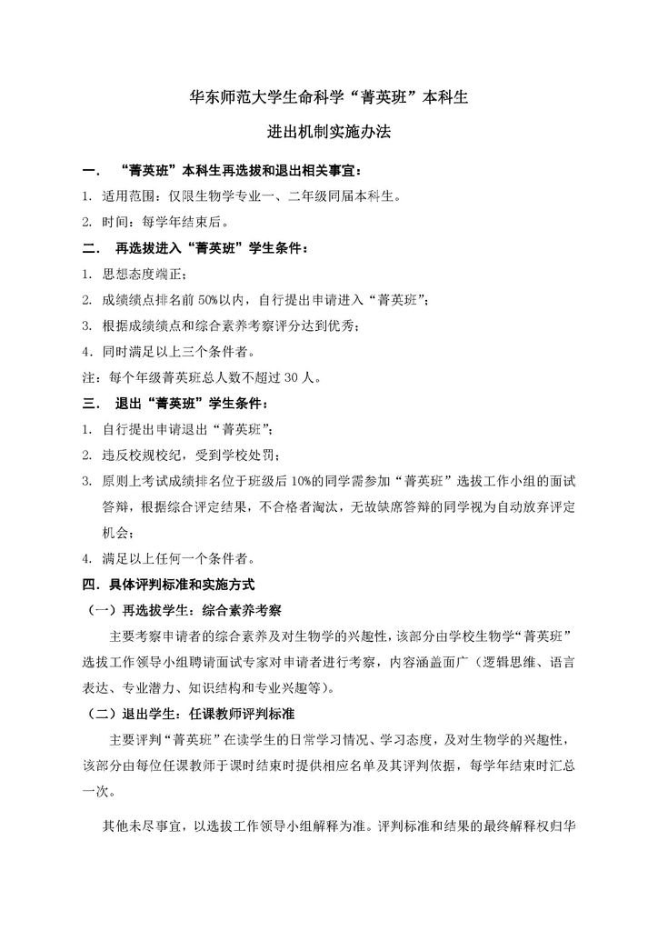 性吧 生命科学“菁英班”本科生进出机制实施办法
