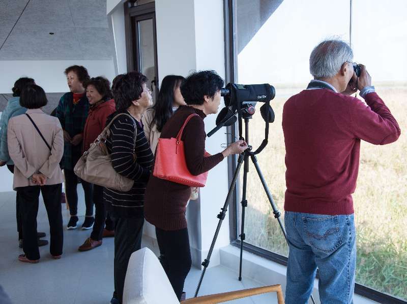 作为在这片滩涂湿地坚守了16年的建设者,汤臣栋学长见证了这片土地的发展。我们观看了2017年全国优秀共产党员汤臣栋同志先进事迹短片“砥砺十八载,筑梦东滩情”的纪录片,了解了汤臣栋学长的先进事迹——“说动三代捕鸟的猎户成为护鸟人”, 汤臣栋学长凭借着心中那份对工作的热忱、对鸟类的坚守,仅用了3年的时间攻克了保护区建设工作中的第一大难题。针对外来入侵物种护花米草,汤学长“与外来物种争夺鸟类栖息地”,经过科学治理,该区域记录到水鸟13000多只次,分属6目9科40种,已经成为了中部区域鹬类、雁鸭类和鹭类等越冬鸟类的重要栖息地,充分验证了互花米草治理的科学性和有效性。