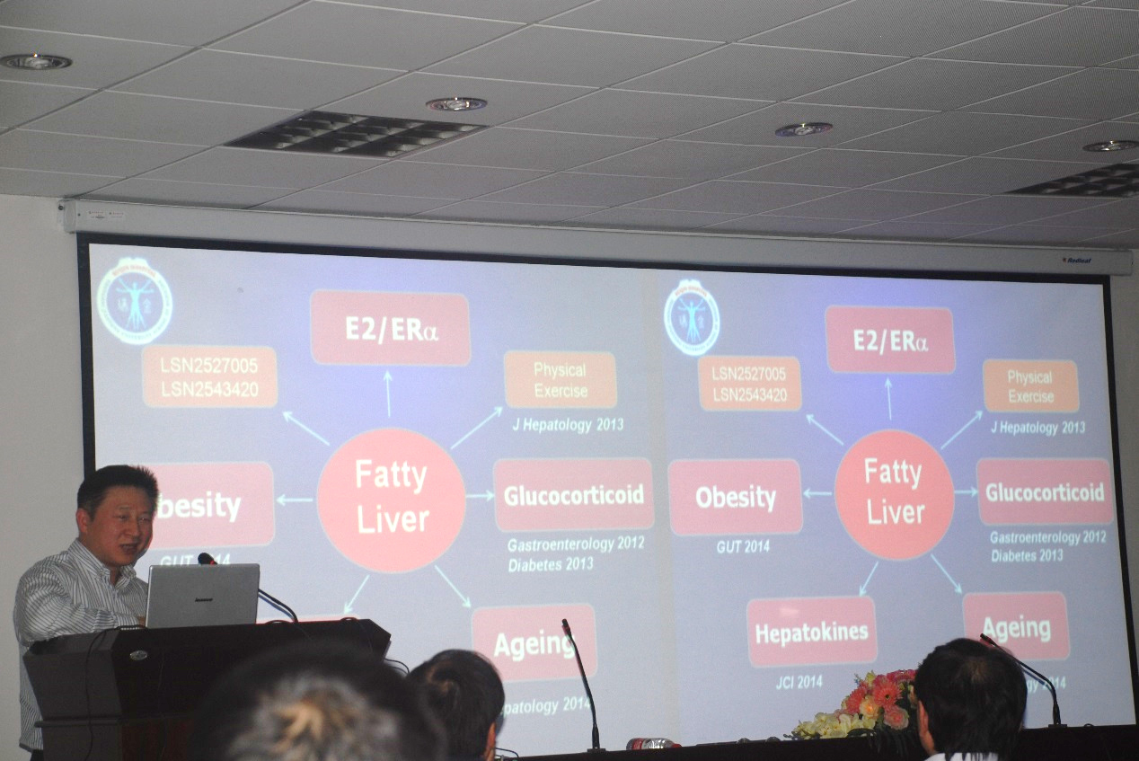 本次学术交流活动由翁杰敏教授主持,性吧 部分师生参加了本次学术交流活动。李小英是上海交通大学医学院附属瑞金医院内分泌代谢科教授、主任医师、博士生导师,上海市内分泌代谢病研究所副所长,主要从事糖尿病发病机制和性腺疾病研究。本次学术报告李小英教授向师生们介绍了肥胖与非酒精性脂肪性肝病(NAFLD)之间的密切关系及现在的全球流行趋势,而目前对由肥胖引发的脂肪变性的作用机制并不是很清楚有待进一步研究。其课题组研究发现,细胞外基质蛋白Periostin能够通过激活JNK信号通路下调PPARα来促进肝脂肪变性及甘油三酯的累积,同时在报告的结尾李小英教授对Periostin等基质蛋白在非酒精性脂肪性肝病等肝脏疾病中的功能提出了进一步见解与展望。
