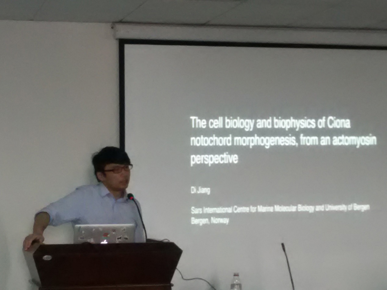 11月6号下午,性吧 杜震宇教授邀请了挪威卑尔艮大学海洋生物研究中心发育生物学实验室主任江涤教授来性吧 进行学术交流,并做了题为“基于肌动蛋白形成机制的海鞘形态发育研究”的校庆学术报告。
