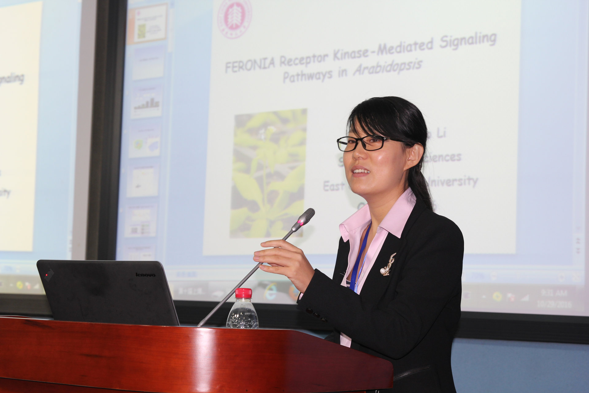 “紫江青年学者”李超研究员做《FERONIA受体激酶介导的信号通路研究》的学术报告。她的报告得到了植物学领域的专家和广大青年学者的一致好评,并展开了热烈的交流讨论。李超研究员已在eLlife, PNAS, Cell Research等高水平杂志上发表多篇植物发育生物学方向的重要研究工作。