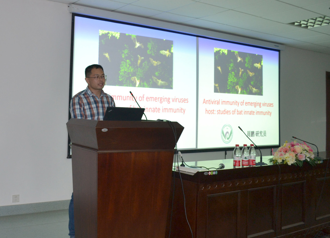 第三场学术报告由中国科学院武汉病毒研究所青年研究员周鹏主讲,周鹏研究员所在实验室长期与王院士合作,其个人研究兴趣专注于蝙蝠分子免疫学领域,此次讲座以其刚发表在PNAS的研究内容为主导,详细介绍了蝙蝠干扰素基因的表达调控机制及其在免疫防御系统中的可能作用,进而提示蝙蝠独特的天然免疫机制,可能是其自身与病毒达成“和平”状态的原因之一。