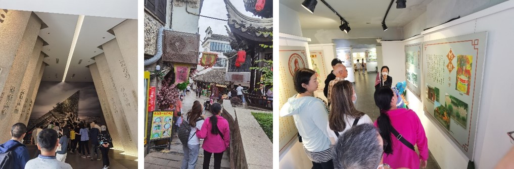 随后,大家移步到金山古镇老街。街头巷尾的小吃、古色古香的建筑、热情洋溢的居民,都展现出了金山古镇独特的魅力,让大家感受到了浓厚的历史文化气息。参观过程中,大家交流互动积极,分享了自己的所观所感,增强了团队凝聚力。