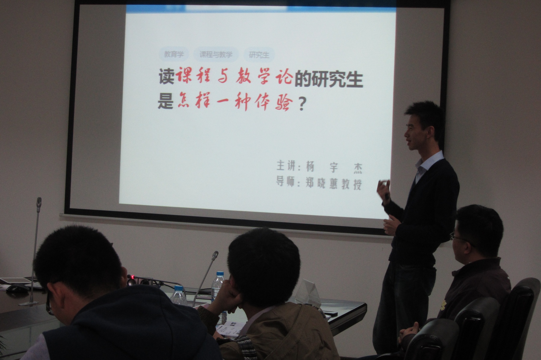 第二位分享者是杨宇杰,课程与教学论2012级硕士生。他以严谨的思维和诙谐的语言向大家展示了“读课程与教学论的研究生是怎样一种体验?”他的报告让不少听众对课程与教学论专业有了更加全面准确的认识,更带给同学们满满的正能量:内心的兴趣是最大的驱动力;而做自己不擅长的工作,往往是弥补短处的机会。