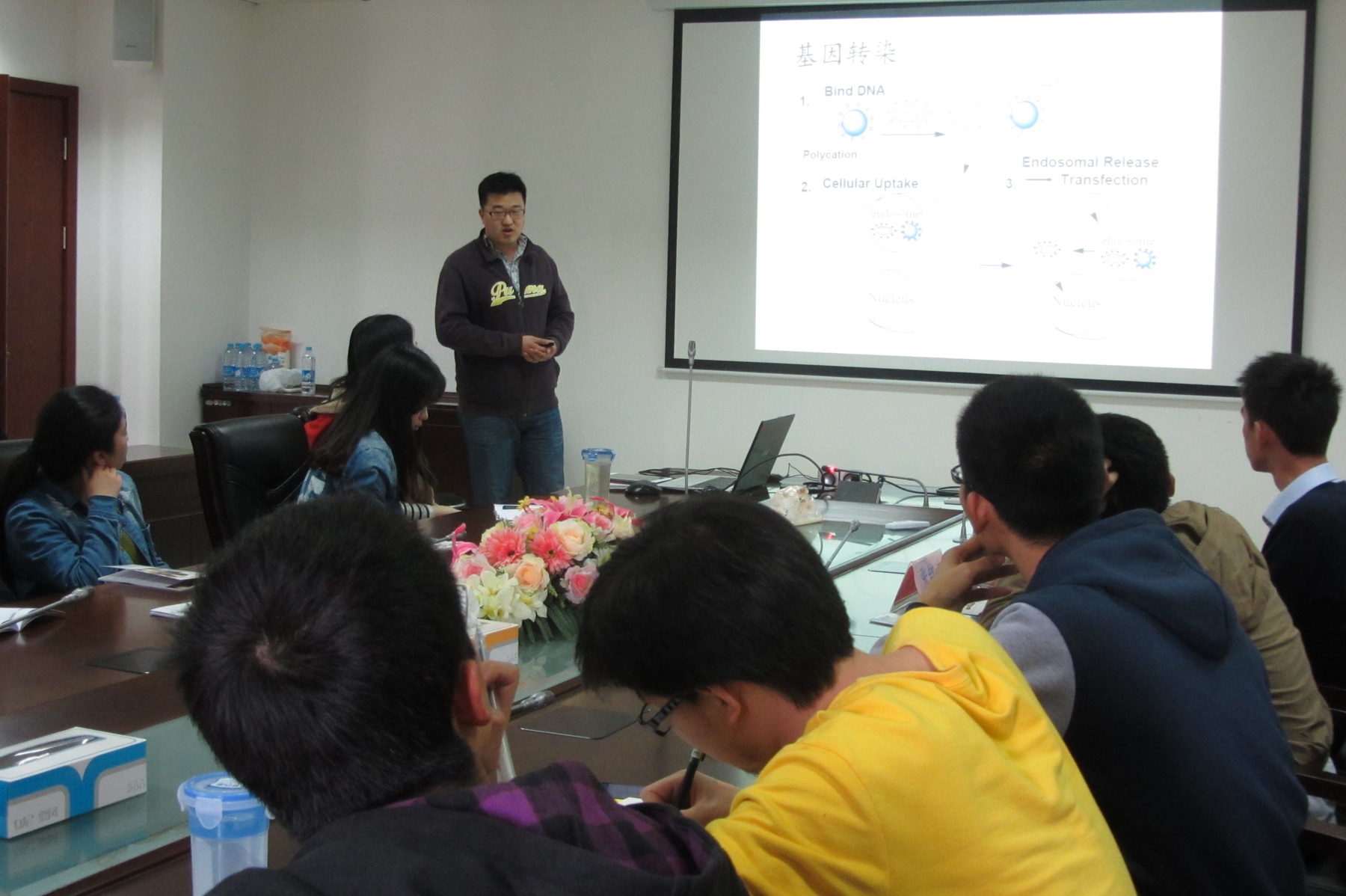 作为本年度“学术沙龙”首场活动,组织者特意邀请了分别来自生化与分子、动物学、课程与教学论不同专业的三位优秀研究生,与同学们分享自己的科研经验和心得体会。王铭明博士以“我和我的基因转染”为题向大家展示了他的科研历程,并分享了他的读博体会:读博如同“赌博”,赌注是青春;若让青春无悔,唯有孜孜不倦。幽默风趣的语言赢得阵阵掌声。