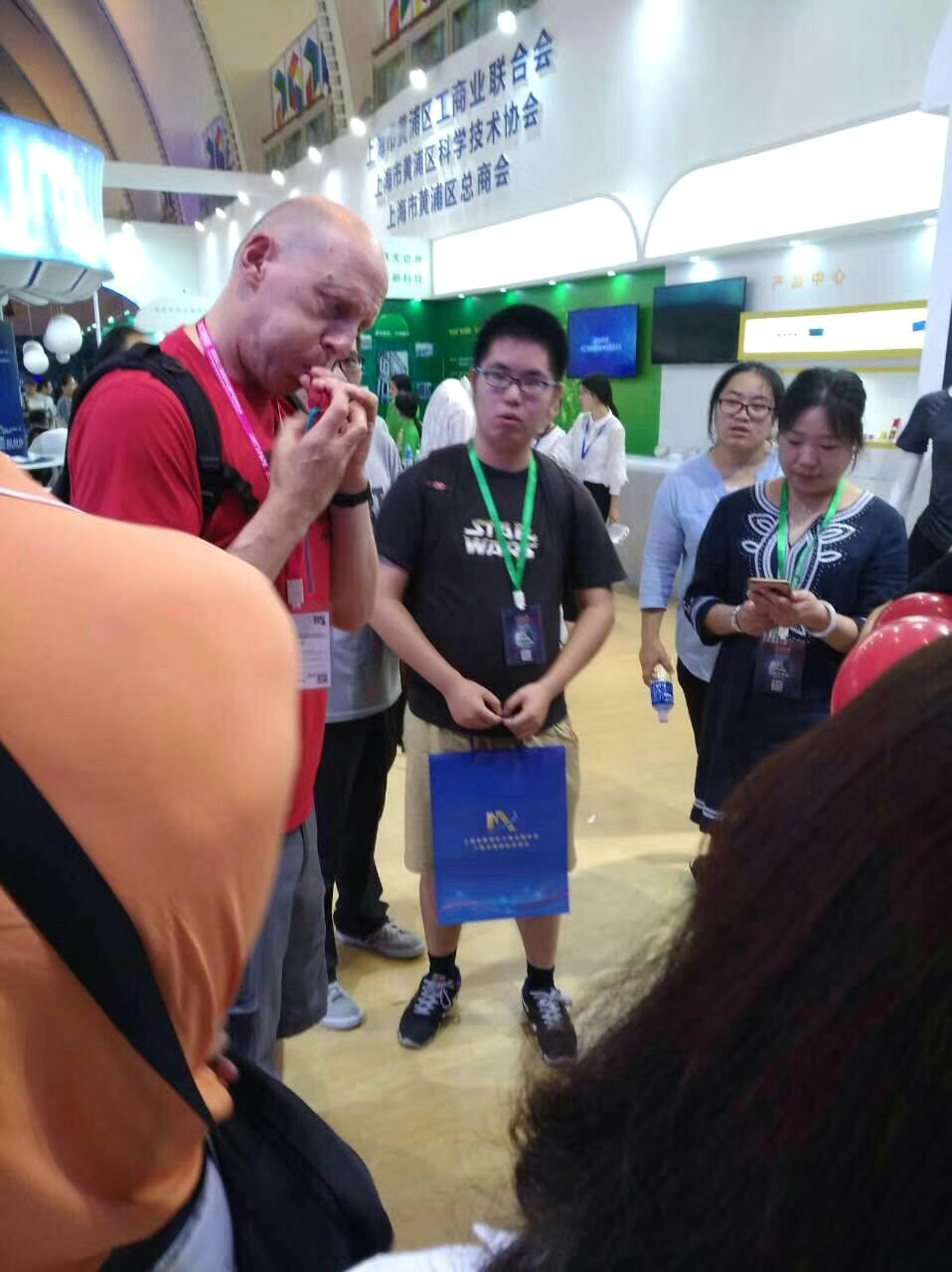 在习近平总书记“科技创新,科学普即是实现创新发展的两翼,要把科学普及放在与科技创新同等重要的位置”的号召下,2017上海国际科普产品博览于2017年8月25日至8月28日在上海展览中心成功举办。此次科学博览会吸引了来自世界10多个国家和地区的350余家科技企业,科技园区,科研机构和高校参与,展品多达3500余件,参观人数预计可达12万人次。科博会的成功举办离不开数以百计的志愿者和主办方幕后工作者的默默付出,我们27名来自性吧