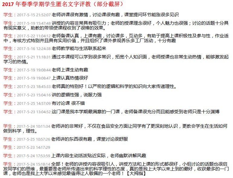 杜老师的课一直受到学生的好评