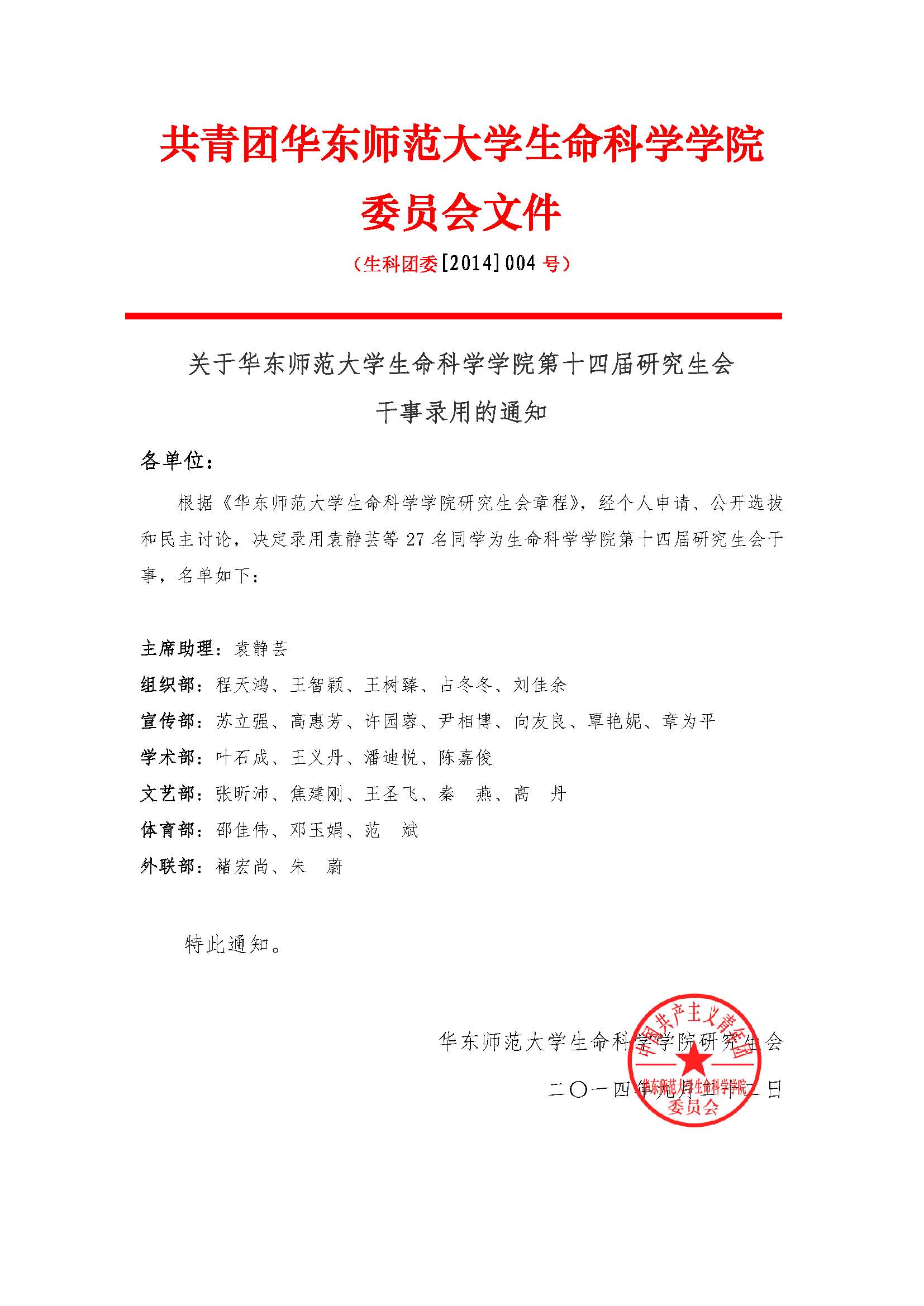 关于性吧 第十四届研究生会干事录用的通知