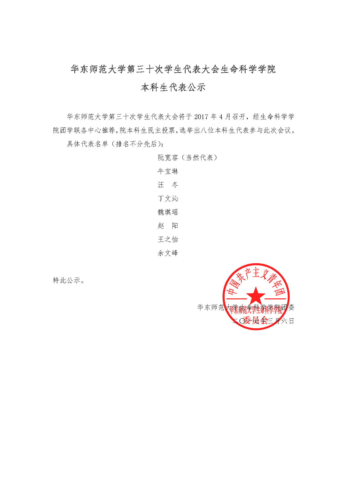 性吧 第三十次学生代表大会性吧 本科生代表公示
