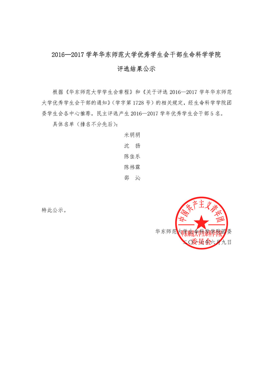2016-2017学年性吧 优秀学生会干部性吧 评选结果公示