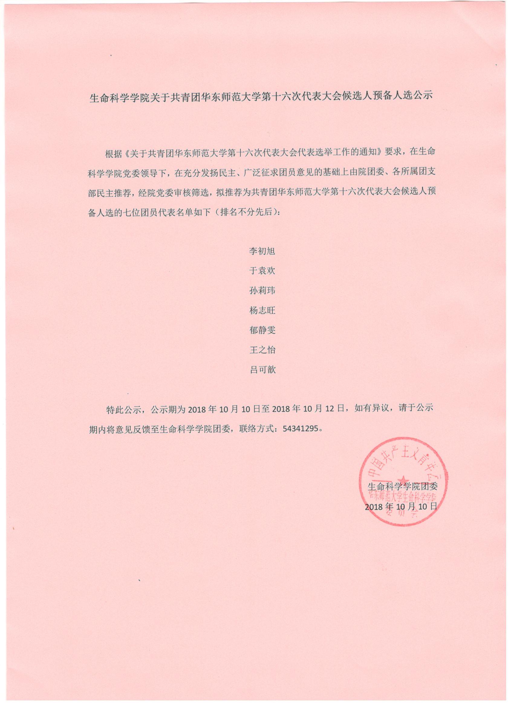 性吧 关于共青团性吧 第十六次代表大会候选人预备人选公示