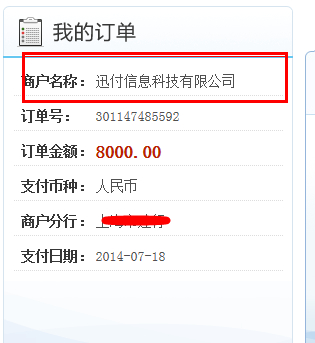 9)、网银支付需借助第三方支付平台收缴后转入性吧 银行,性吧 的合作平台为“迅付信息科技有限公司”,故在付费时看到的商户名一律为此名,属正确显示。