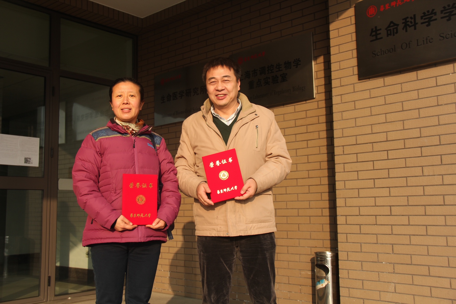 孙刘海老师和栾瑞红老师手捧来之不易的荣誉证书