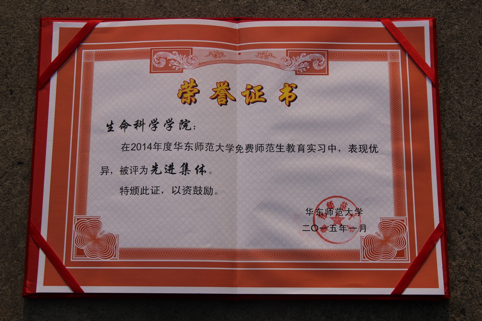 荣获2014年度教育实习“先进集体”荣誉称号
