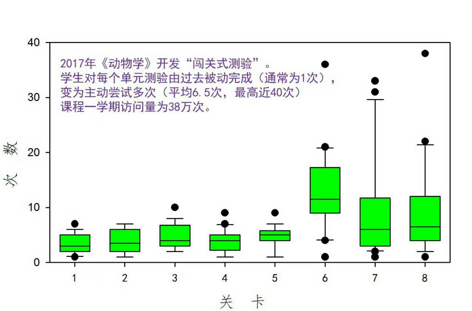 姜老师将游戏闯关理念引入到教学实践中,开发出闯关式测验,颠覆了学生“被学习”的角色,引导学生主动接受闯关式挑战,实现了对学生的个性化培养。学生对测验由过去被动完成单次,变成主动尝试多次。