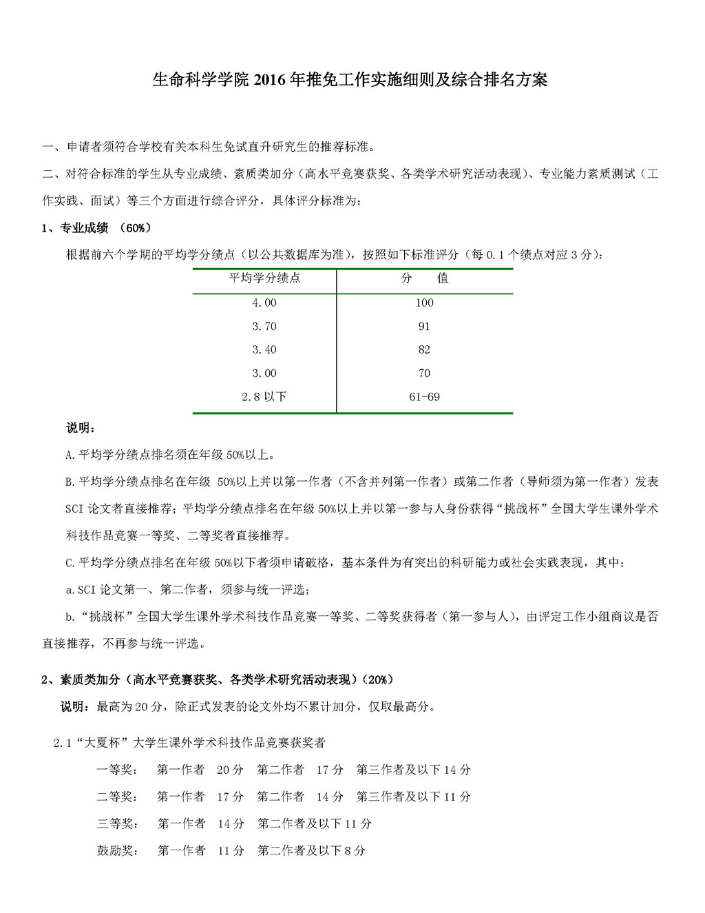 性吧 2016年推免工作实施细则及综合排名方案公示(9.3-9.5)
