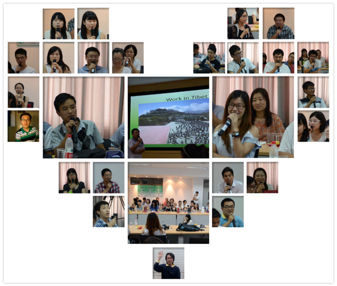 教师教学发展中心429会议室里,一场主题为“365天故事汇”的活动在热烈地进行,辅导员苏振兴和高良才老师首先为每一位同学送上祝福,接下来有人分享了第一次领工资时的欣喜,也有人讲述了第一次给客户道歉的委屈,有人讲述了第一次相亲的尴尬,也有人分享了成为准妈妈的幸福,有人回顾了找工作时候的艰辛,也有人表达了对未来生活的憧憬。更多时候,大家都在寻找师大给每个人身上留下的烙印,感谢在师大里遇到的每一位老师,铭记在师大四年求学的美好时光。在日本,美国,澳洲求学工作的7名同学也各自为大家送上了一份来自大洋彼岸的问候。