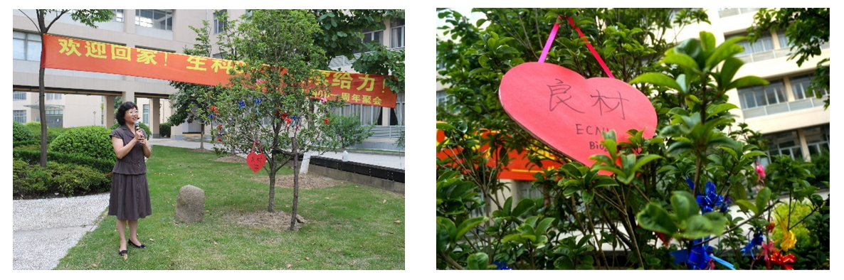 副院长钱旻教授也来到了同学们中间,今年也是钱旻老师本科毕业30周年。看着08级同学个个青春洋溢的笑脸,钱旻老师衷心祝福大家在各自的工作岗位上再接再厉,把师大生科人的优秀品质播撒到全国各地。随后大家为月桂树举行了挂牌仪式,“良材”月桂树和“给力石”见证了08级毕业生离开校园后的再次重逢。