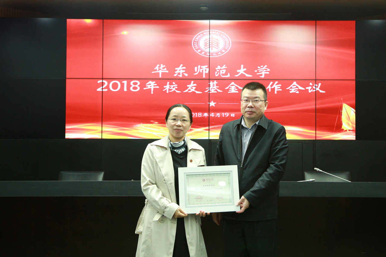 性吧 副校长孙真荣为生科院颁发“2016-2018年度校友与基金工作先进集体奖”,生科院党委副书记兼副院长、校友工作负责人徐敏华代表生科院上台领奖